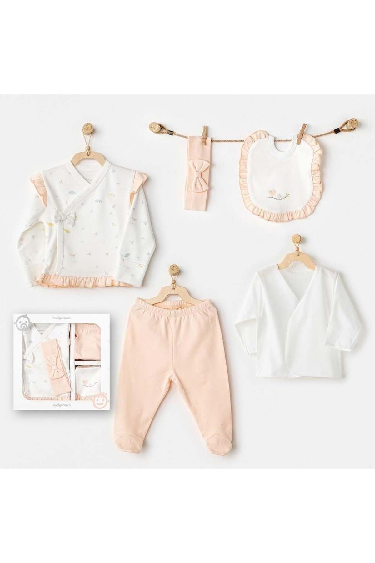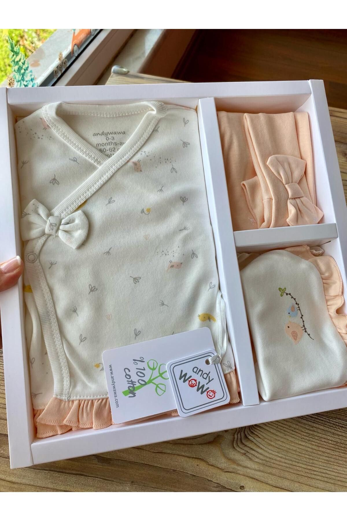 KIZ BEBEK HASTANE ÇIKIŞ TAKIMI SOMON RENK KUŞ DESENKLİ Pembe