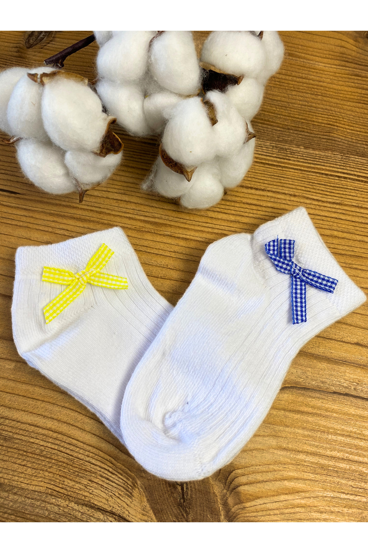 SARI – MAVİ-Kurdeleli Kız Bebek 2’li Çorap – 18-24 Ay beyaz