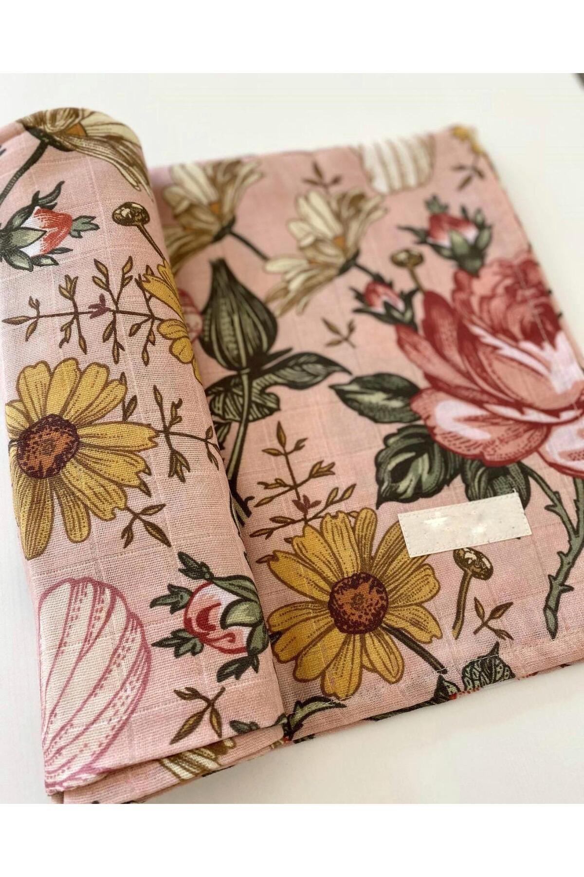 Vintage Rose Pembe Müslin Örtü 110×110 ebat Pembe